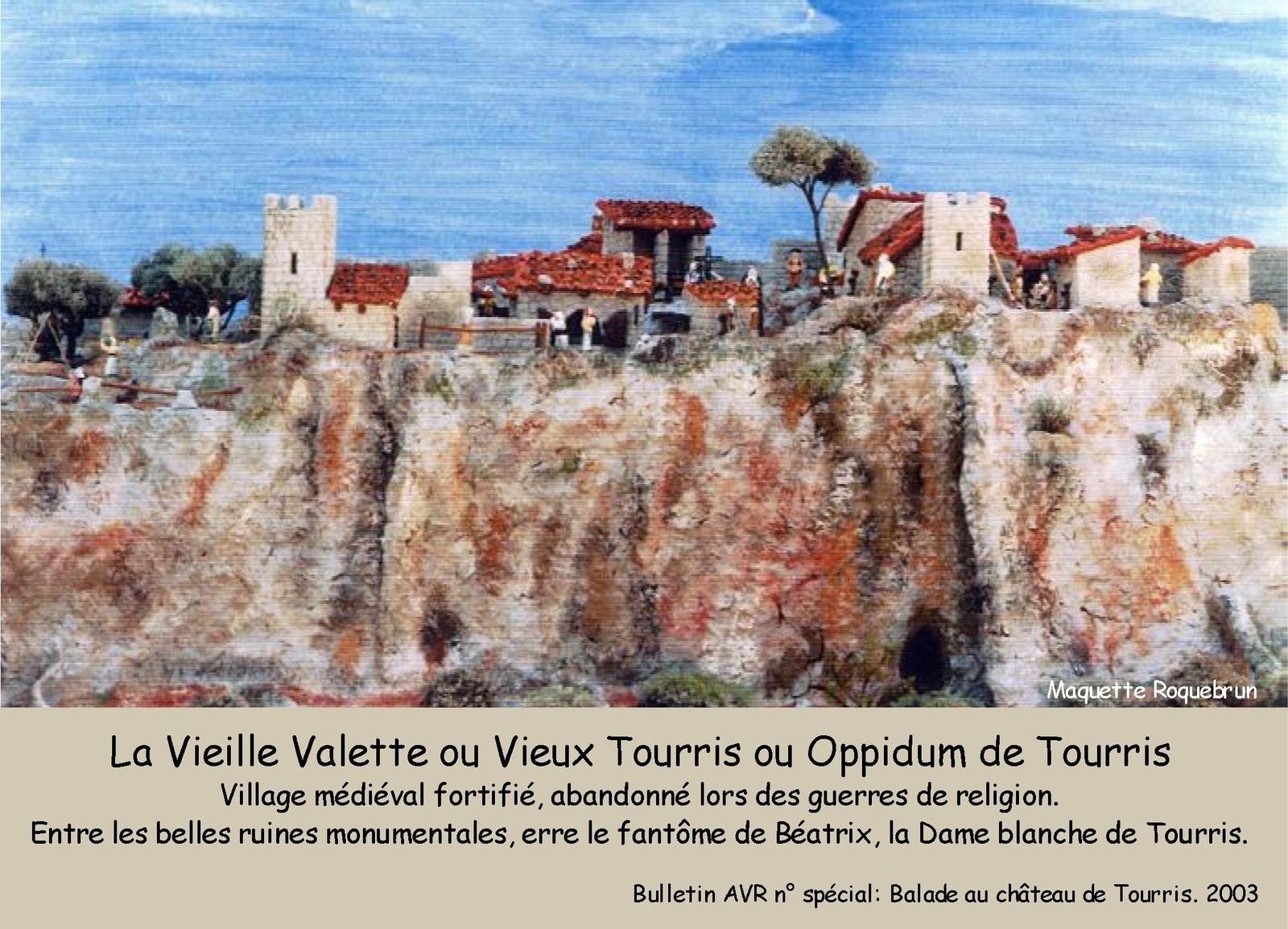 Illustration : Peinture de Richard Roquebrun, à partir de la maquette du village (détruite depuis) qu’il avait réalisée avec Robert Durand en 1989 sur la base de recherches archéologiques